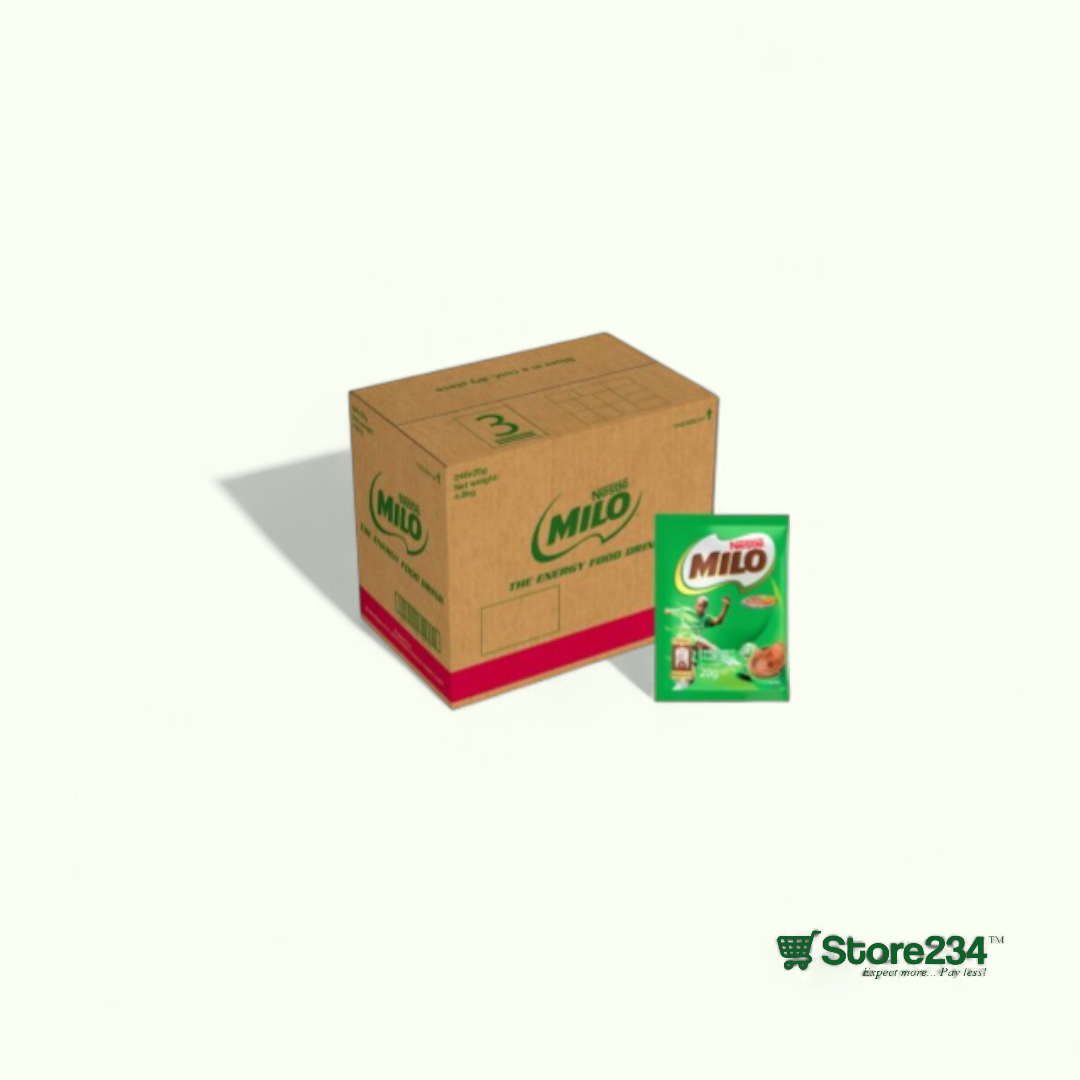 Milo Sachet (20g x 200) offers convenient, single-serve energy in bulk. Available now at Store234 – your trusted online supermarket in Nigeria.